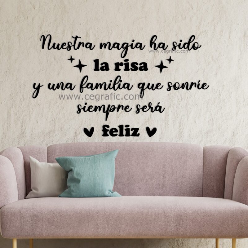 Elaborado en madera mdf de 4mm y vinilo adhesivo negro, dorado, plateado o blanco.
