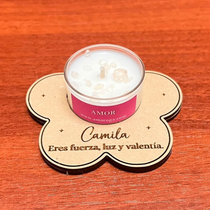 - 4 velitas (Medida c/u: Alto: 2cm – Diámetro: 4cm – Material: acrílico)