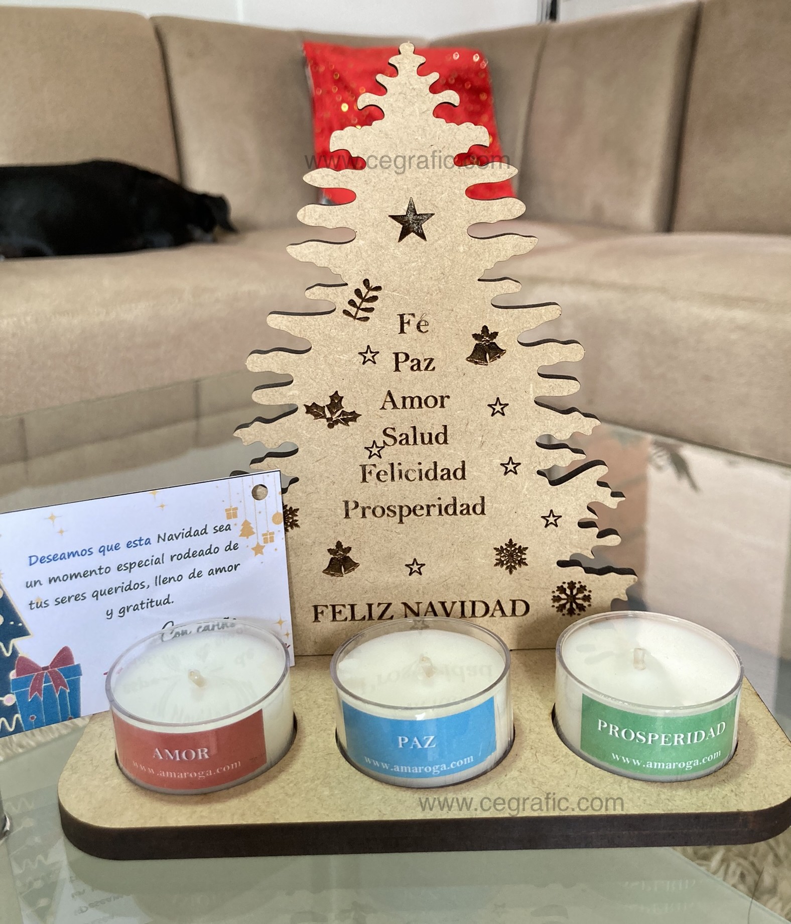 Porta vela árbol personalizado con tres velitas