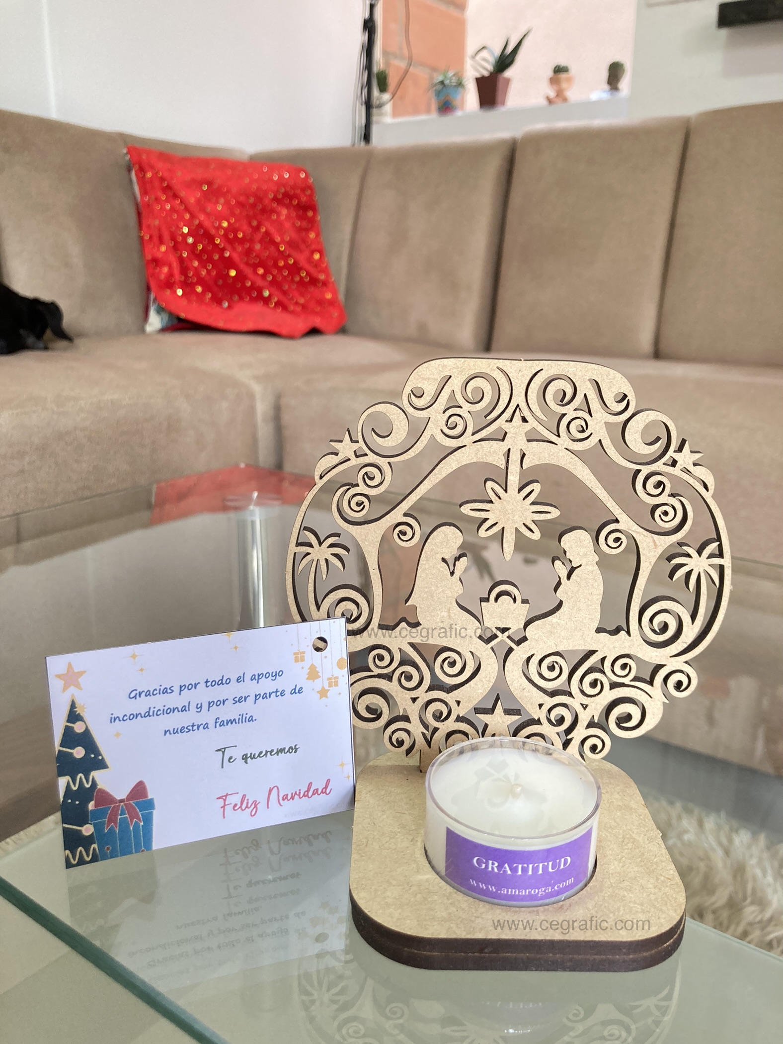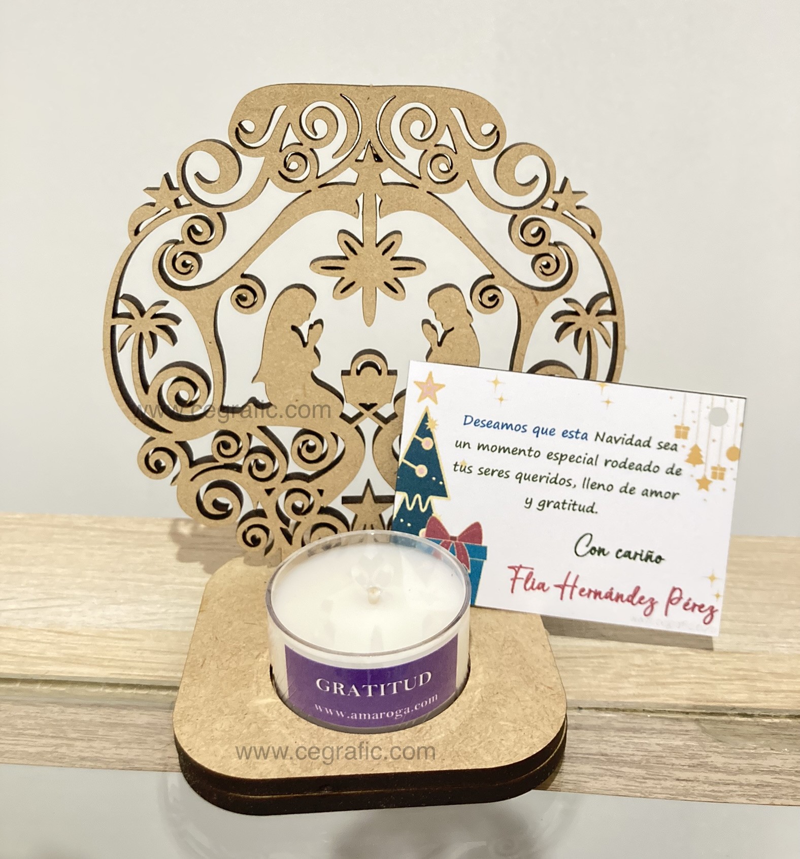 Porta vela pesebre con velita.