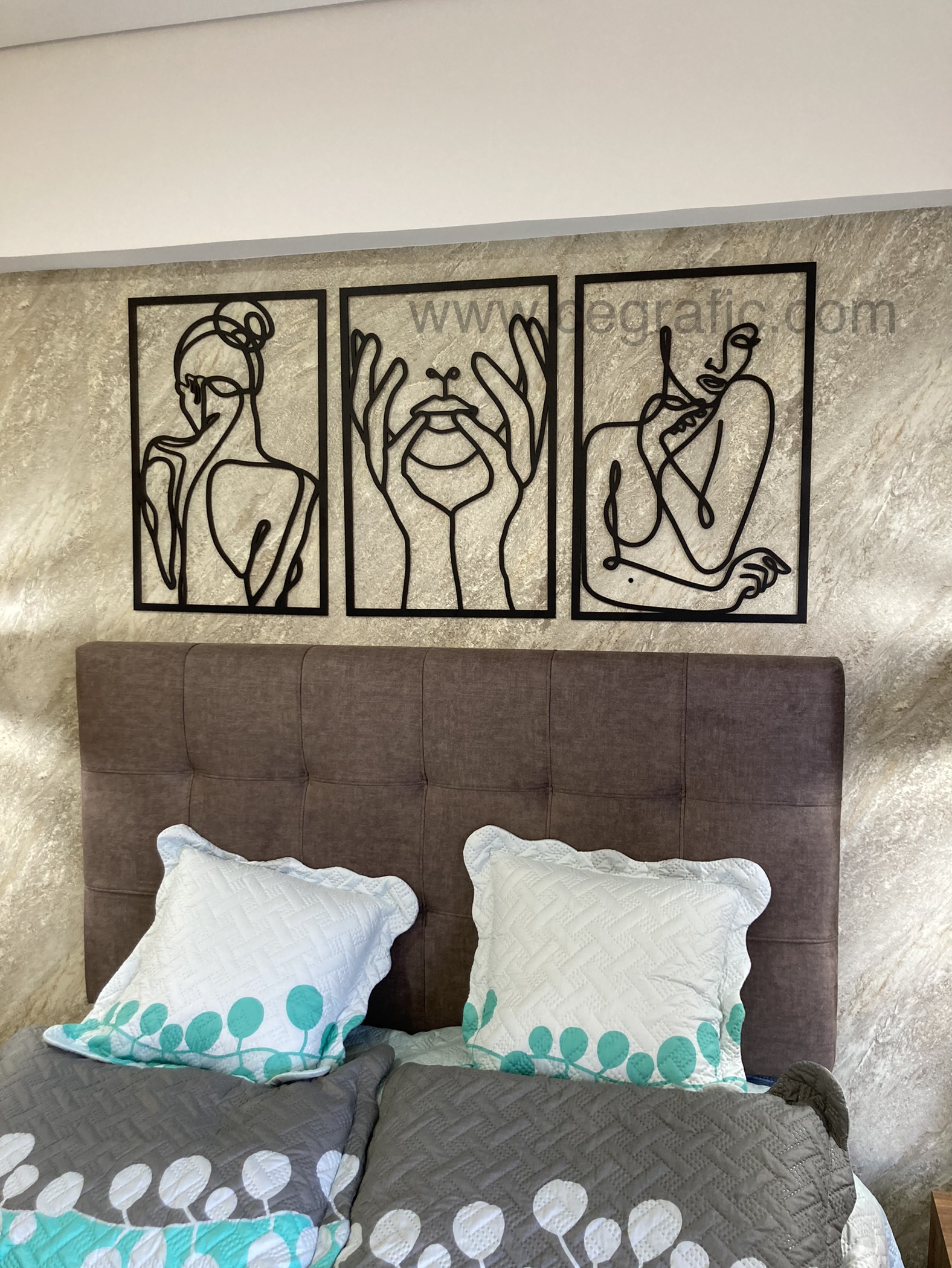 Elaborados en madera mdf de 4mm y vinilo adhesivo negro, blanco, dorado, plateado.